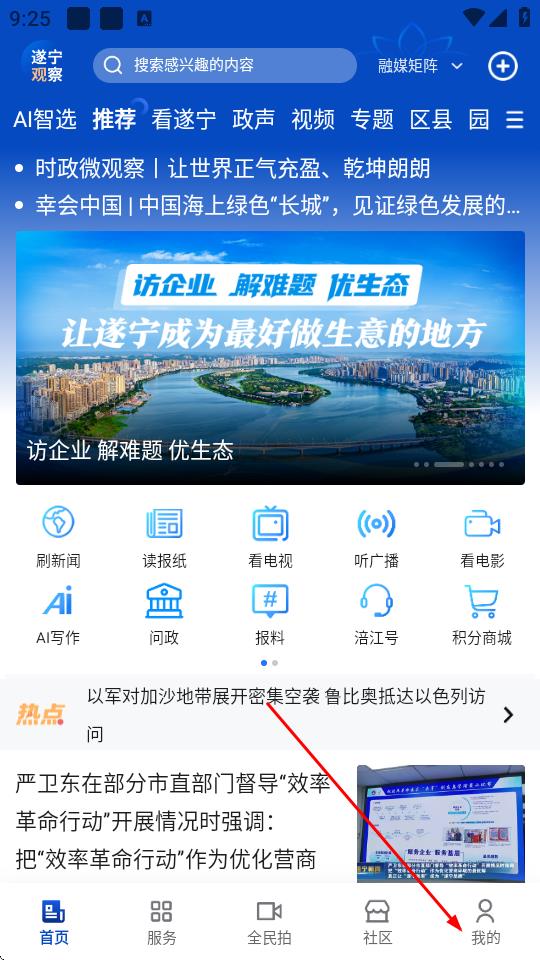 1、打開遂寧觀察App,點擊底部導航欄右下角我的選項。