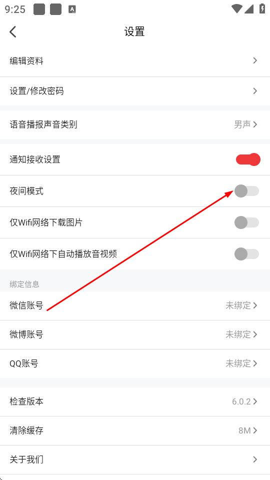3、在設置頁面中,找到夜間模式選項,點擊其右側的開關按鈕。