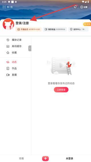 3、在個(gè)人主頁(yè)內(nèi),點(diǎn)擊登錄/注冊(cè)的區(qū)域。
