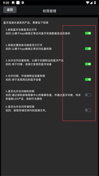 4、在權(quán)限管理頁面,可對各個權(quán)限進行開啟或關(guān)閉的管理操作。