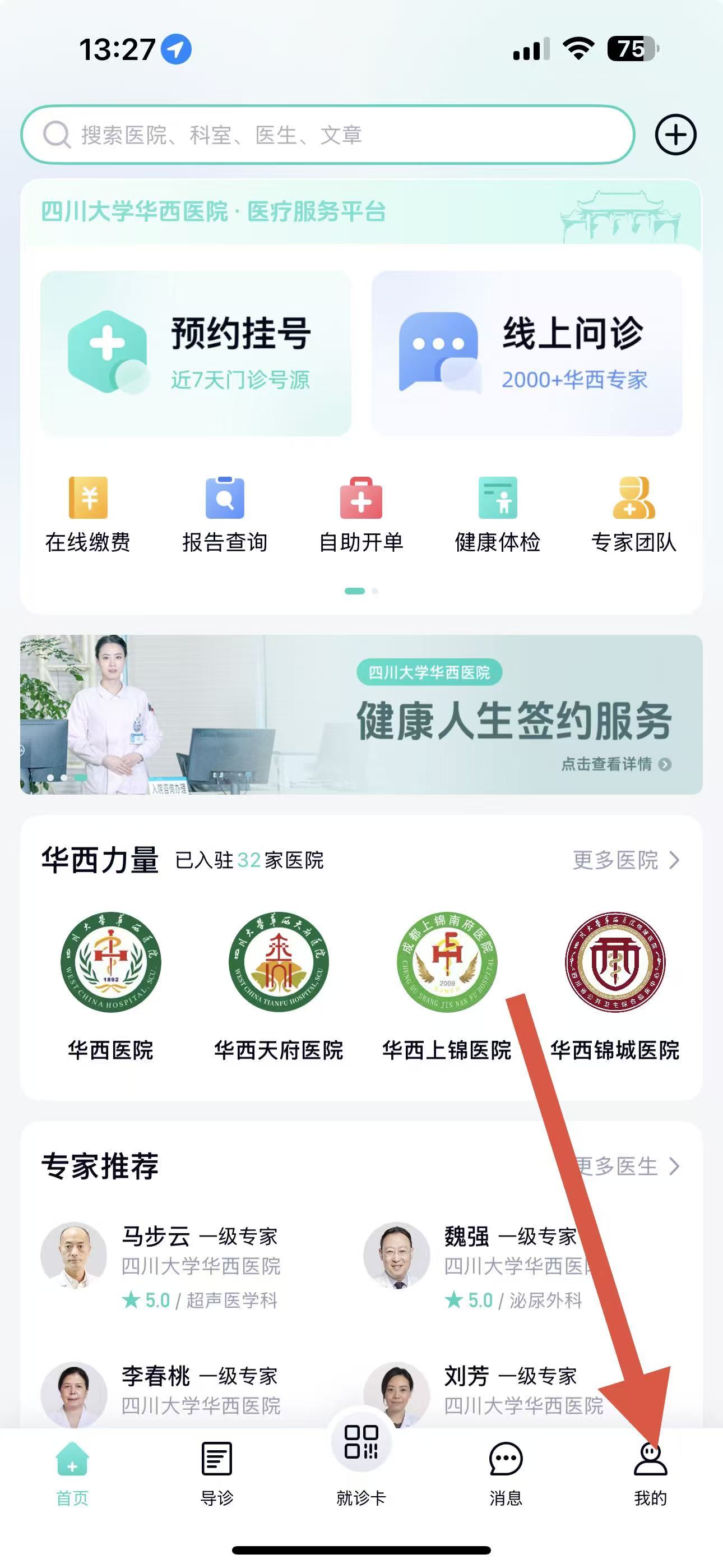 1、在華醫(yī)通App首頁點擊底部的我的選項,進入個人中心頁面。