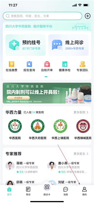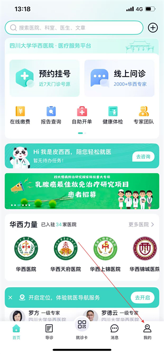1、打開華西通APP,點擊底部導(dǎo)航欄我的選項。