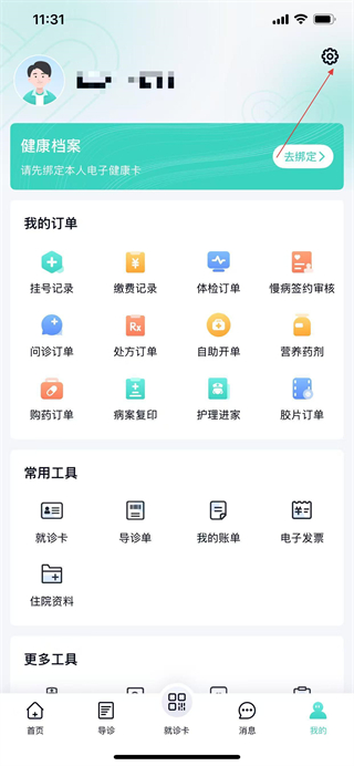 1、在“個人中心”進入“綁定就診卡”頁面。