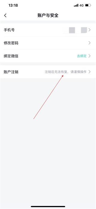 4、在賬戶與安全頁面點擊賬戶注銷選項,進入賬戶注銷確認(rèn)頁面。
