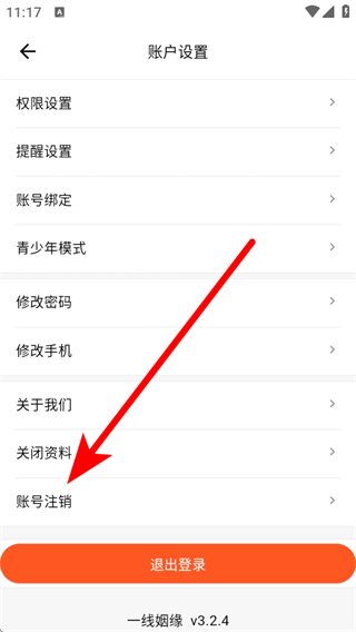 2、在賬戶設置頁面,點擊賬號注銷選項。