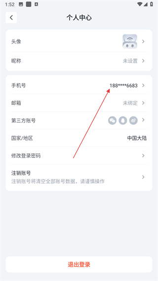 2、在個(gè)人中心頁(yè)面,點(diǎn)擊手機(jī)號(hào)選項(xiàng)。