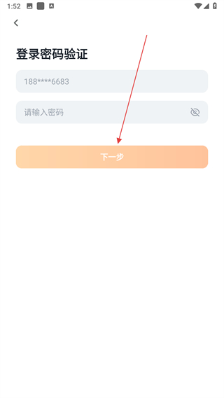 4、在登錄密碼驗(yàn)證頁(yè)面,輸入密碼后點(diǎn)擊下一步按鈕。