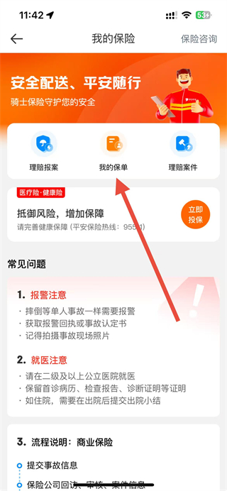 2、在個人頁面點擊我的保險選項,進(jìn)入我的保險頁面。