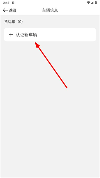 4、在車輛信息頁面,點擊認(rèn)證新車輛按鈕,按提示填寫車輛相關(guān)信息并提交,完成車輛信息認(rèn)證流程。