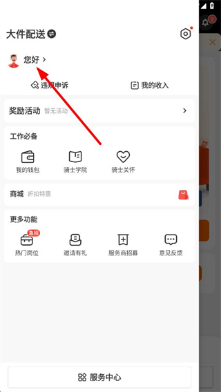 2、在功能列表中點擊頭像區(qū)域,進(jìn)入個人中心頁面。