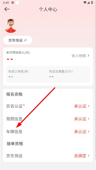 3、在個人中心,找到車輛信息選項,點擊進(jìn)入車輛信息管理界面。