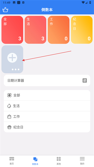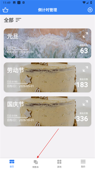1、打開倒計時助手應(yīng)用,點擊倒數(shù)本選項。