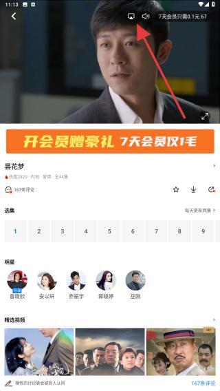 2、在播放頁面右上角,找到屏幕形狀的投屏圖標(biāo),點擊后彈出設(shè)備搜索界面。