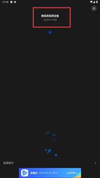 3、在請選擇投屏設(shè)備界面,選擇與手機連接同一WiFi的電視/機頂盒設(shè)備,即可完成投屏。