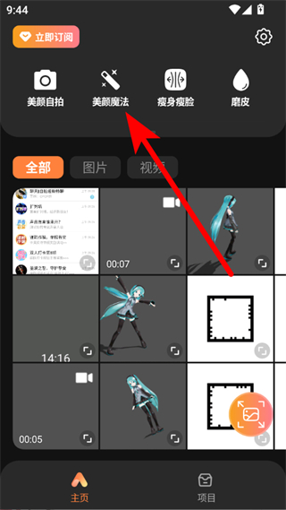 1、打開AirBrush APP,點擊美顏魔法選項,進(jìn)入圖片選擇頁面。