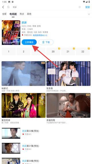 3、在搜索結(jié)果中找到目標(biāo)劇集,點擊立即播放按鈕,即可開始觀看。