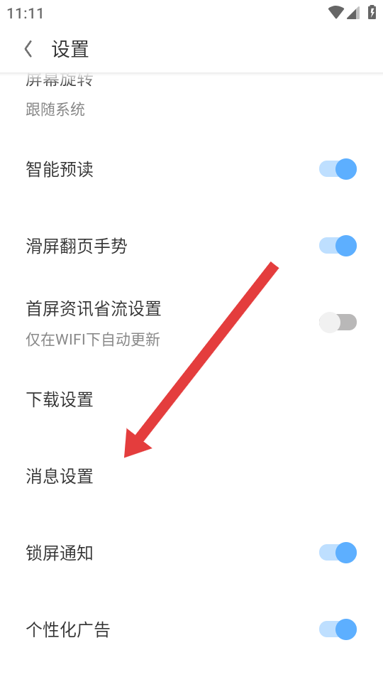 2、在設(shè)置界面中,滑動(dòng)查找功能列表,點(diǎn)擊消息設(shè)置選項(xiàng),進(jìn)入消息通知專屬設(shè)置頁面。