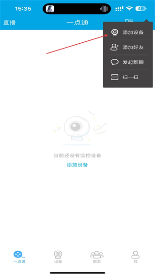 2、在右上角彈出的菜單欄中,找到并點擊添加設(shè)備的功能按鈕。