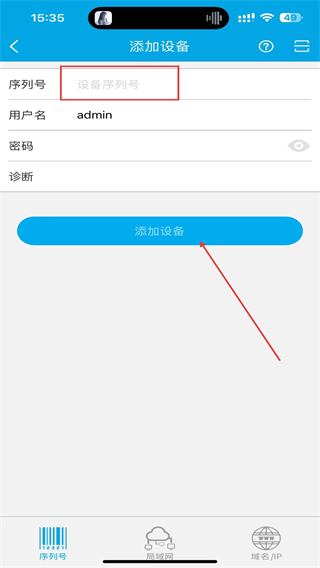 3、進入添加設(shè)備的界面內(nèi),輸入序列號,再點擊添加設(shè)備即可。