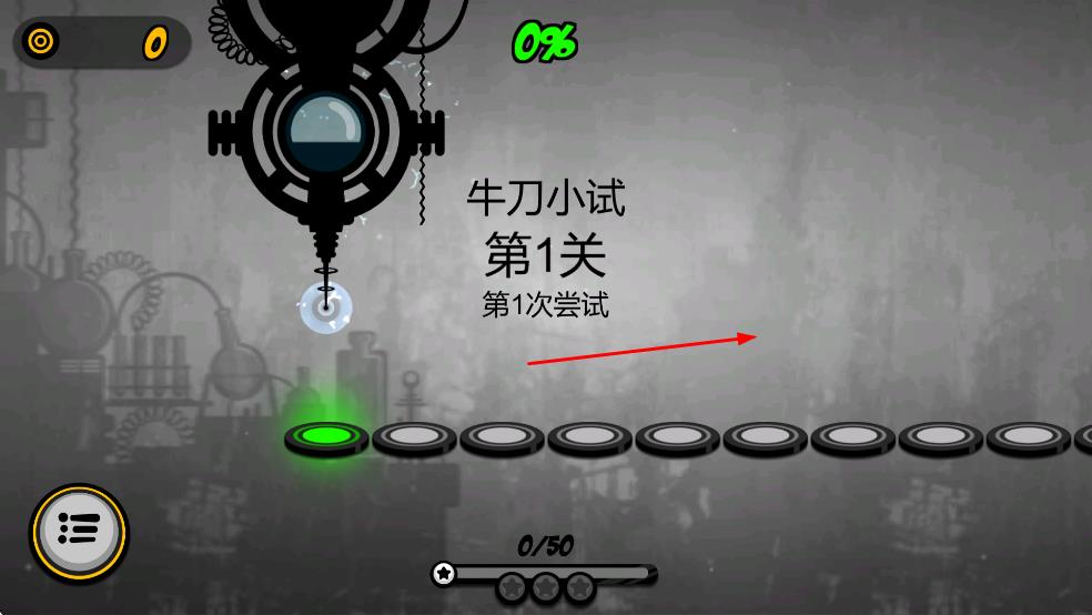 2、在關(guān)卡選擇界面,選擇“牛刀小試 第1關(guān)”,此時(shí)會(huì)進(jìn)入該關(guān)卡的游戲場(chǎng)景,準(zhǔn)備操控黑色小生物開始闖關(guān)。