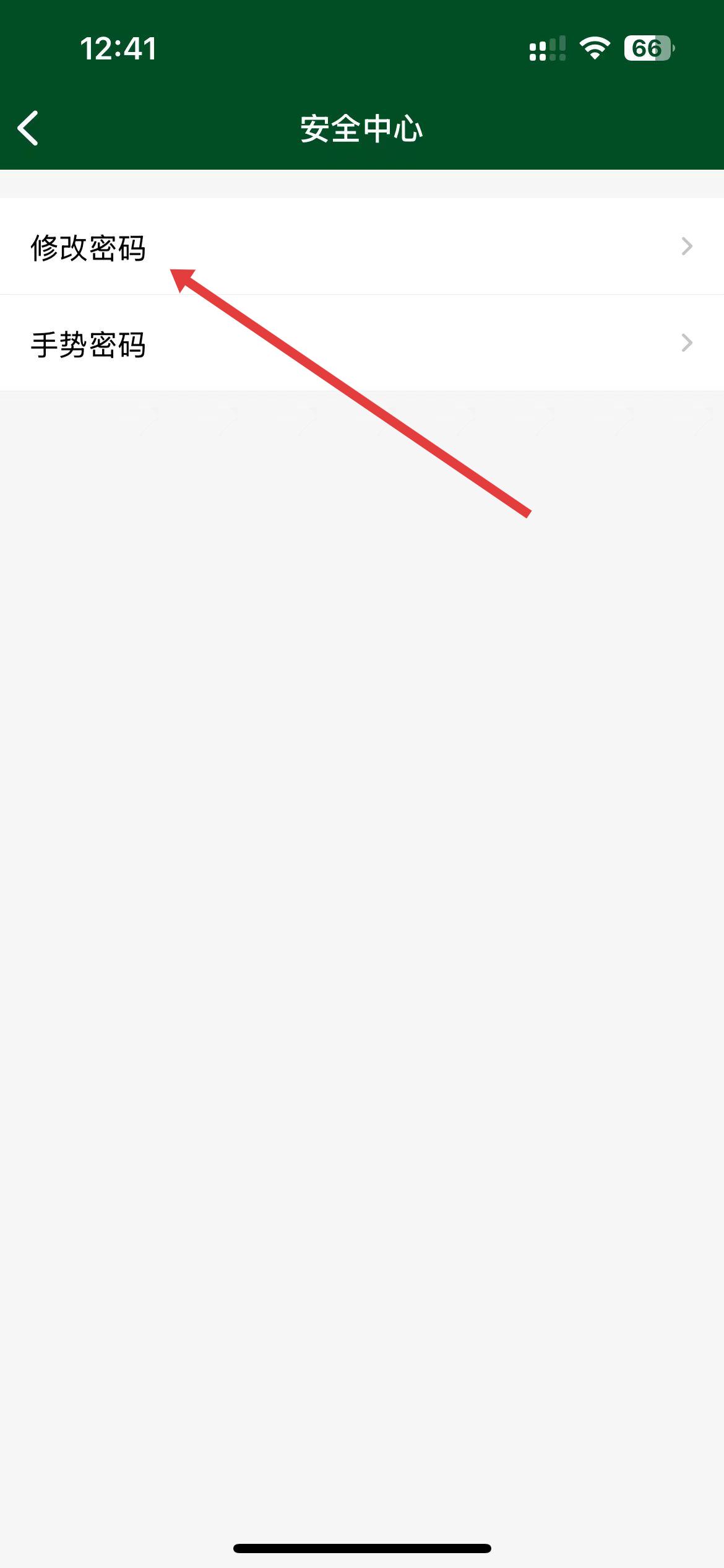 3、在安全中心頁面里,點(diǎn)擊修改密碼選項(xiàng),進(jìn)入修改密碼操作。