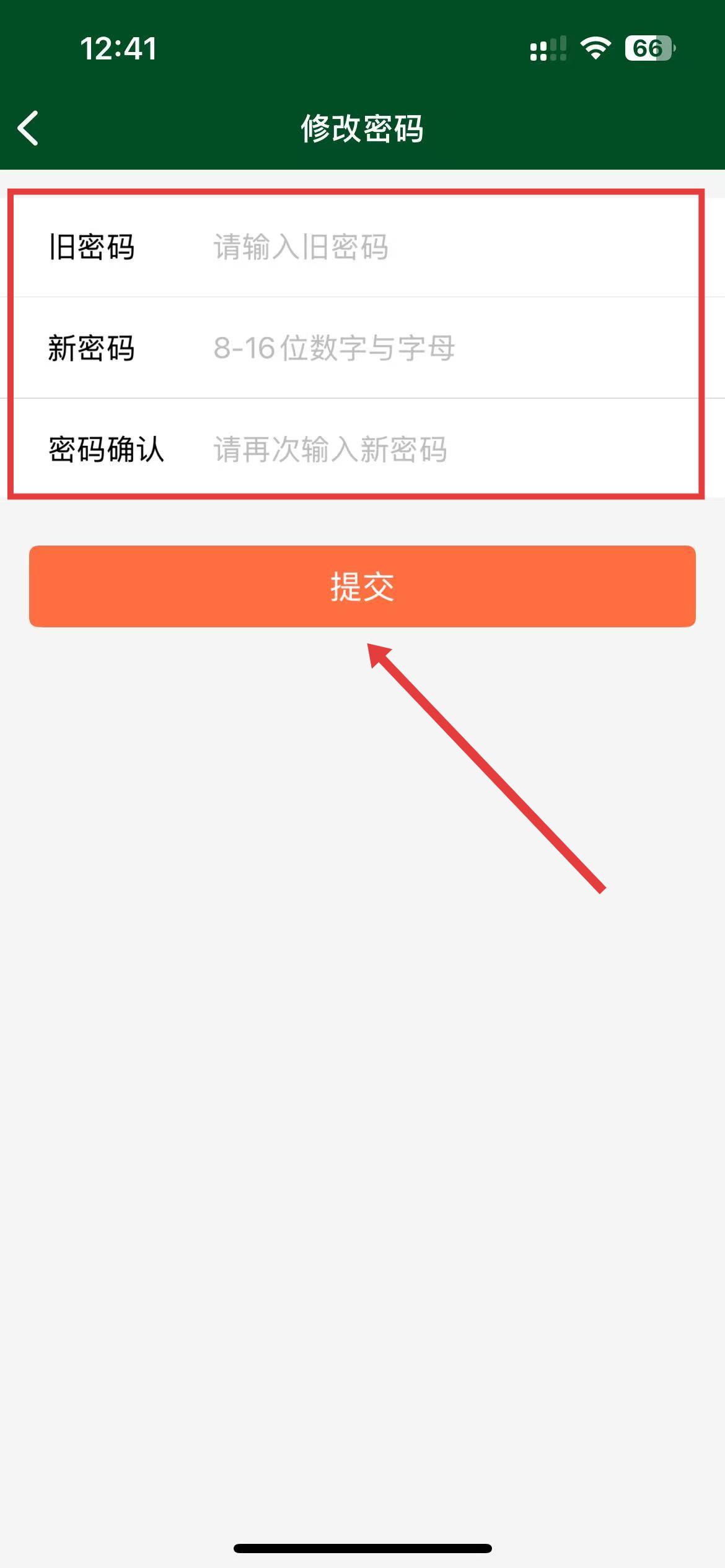 4、在修改密碼頁面,輸入舊密碼,再設(shè)置新密碼,再次輸入密碼確認(rèn),完成后點(diǎn)擊提交,即可成功修改密碼。