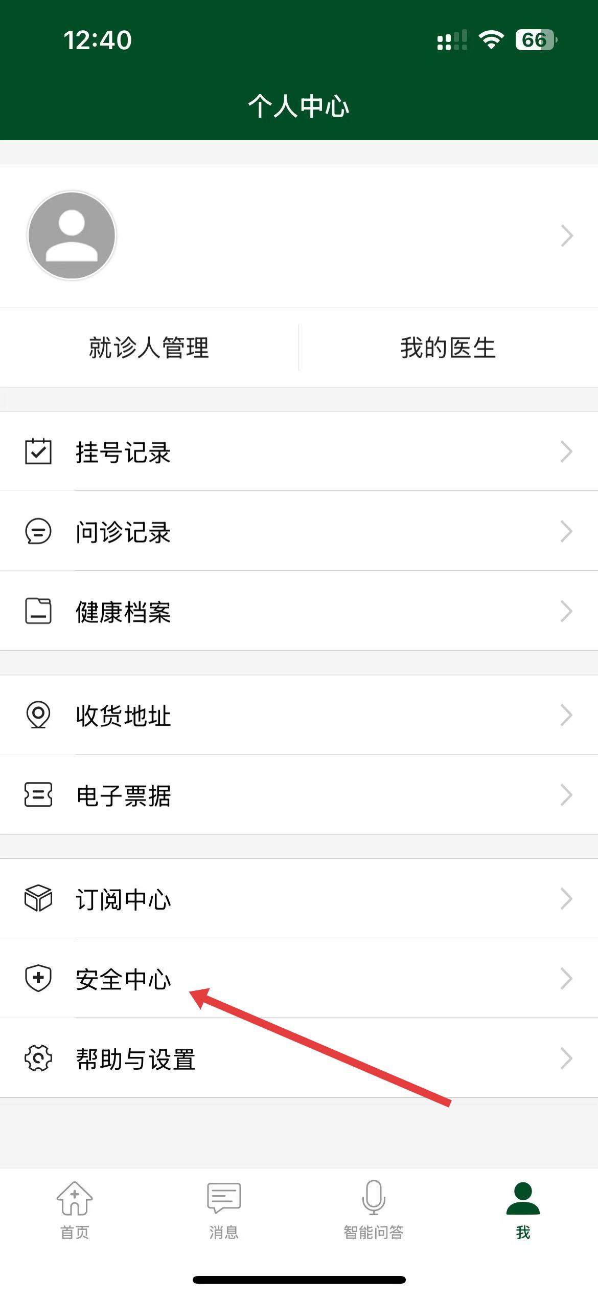 2、在個(gè)人中心界面中,找到并點(diǎn)擊安全中心選項(xiàng),進(jìn)入安全中心頁面。