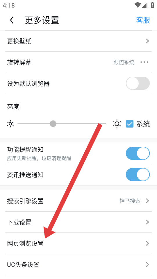 2、在更多設(shè)置頁面中找到并點擊網(wǎng)頁瀏覽設(shè)置選項,進(jìn)入網(wǎng)頁瀏覽相關(guān)設(shè)置界面。