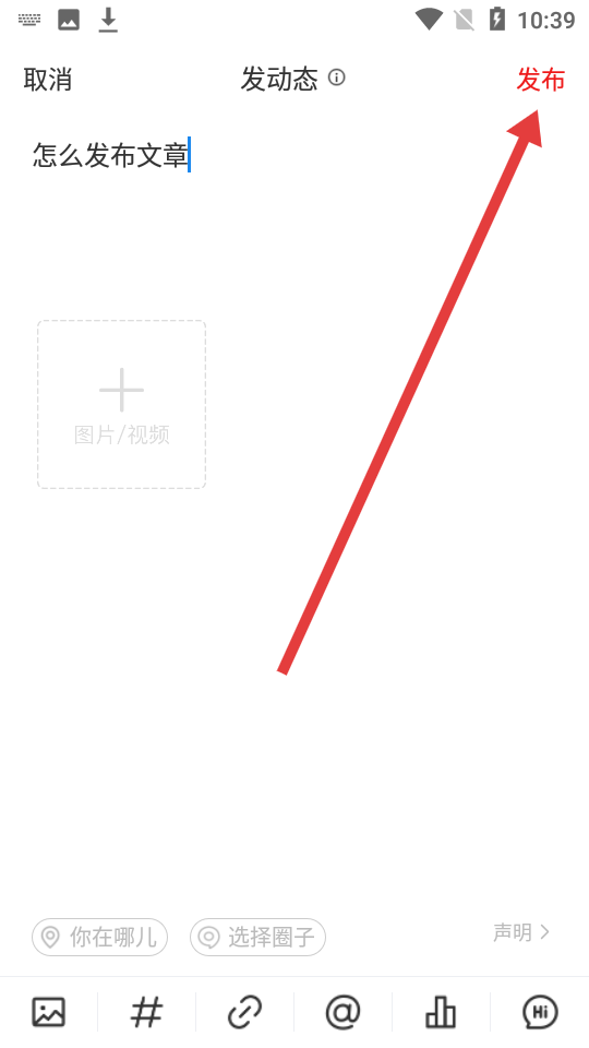 3、編輯完發(fā)布內(nèi)容后,點擊右上角亮起的發(fā)布按鈕,即可發(fā)布文章。