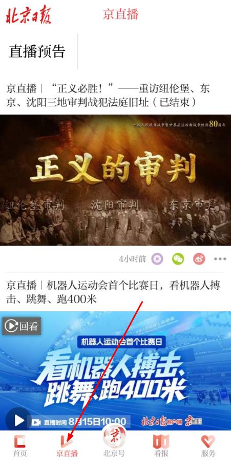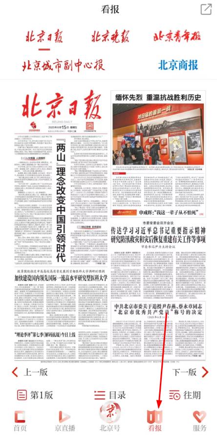 3、點(diǎn)擊底部看報(bào),觀看實(shí)時(shí)直播或熱播推薦的回放內(nèi)容如北京日?qǐng)?bào)選擇訂閱即可。