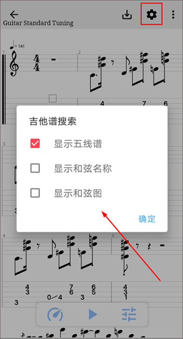 4、可以選擇是否顯示五線譜和和弦譜等。
