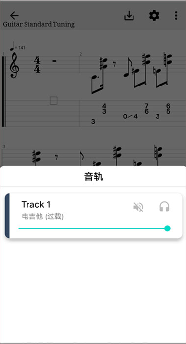 -GTP 樂譜支持軌道音量調(diào)節(jié),可以靜音吉他軌道,把樂譜作為伴奏跟隨樂譜演奏
