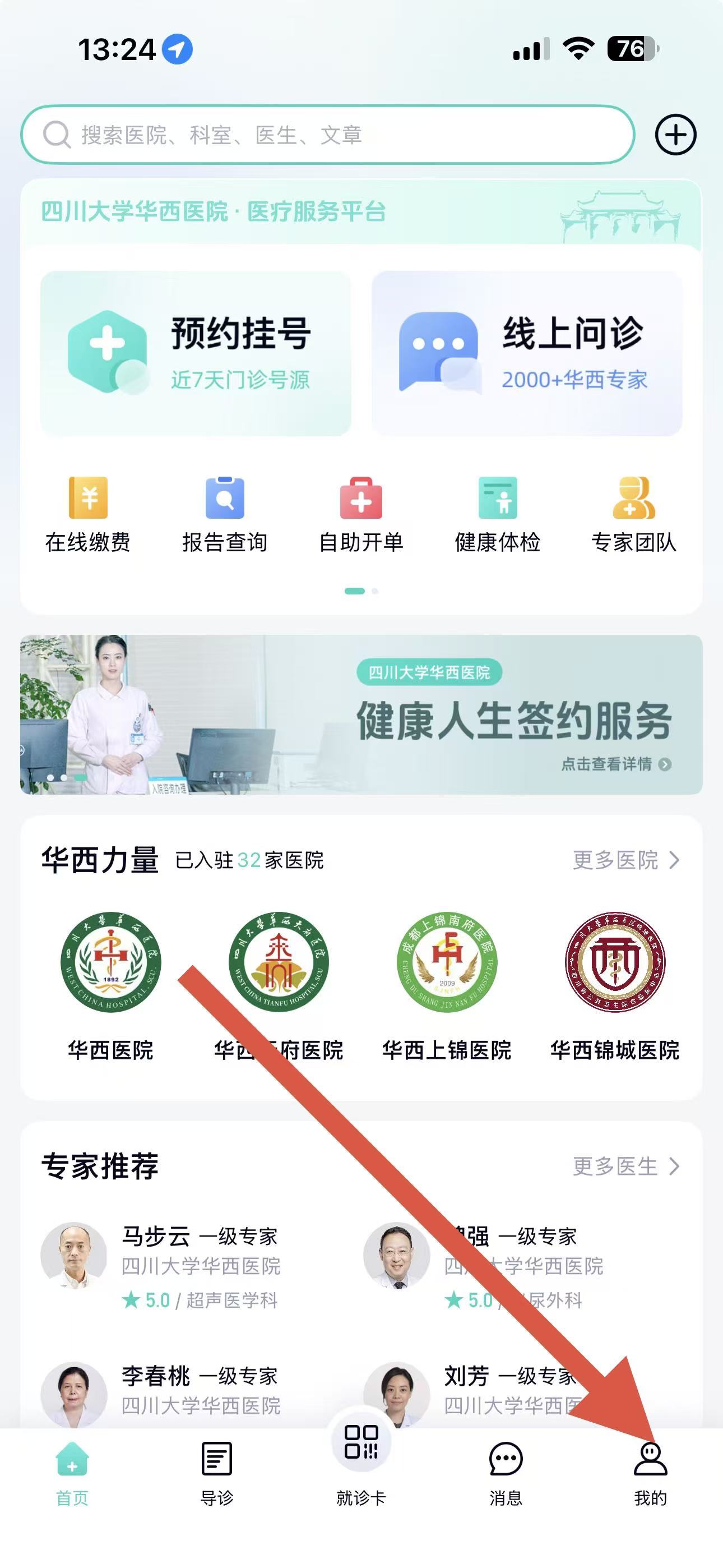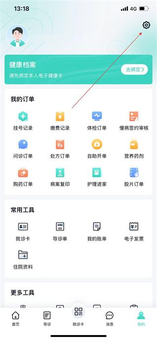 1、在華醫(yī)通App首頁(yè)點(diǎn)擊底部的我的選項(xiàng),進(jìn)入個(gè)人中心頁(yè)面。