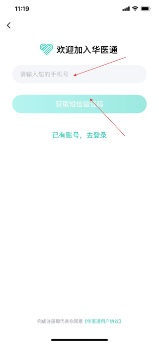 3、在注冊(cè)頁(yè)面輸入手機(jī)號(hào),點(diǎn)擊獲取短信驗(yàn)證碼并填入。