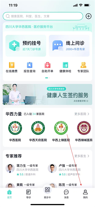 1、打開(kāi)華西通APP,點(diǎn)擊底部導(dǎo)航欄我的。
