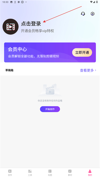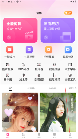 1、打開(kāi)剪意視頻剪輯APP,在首頁(yè)右下角點(diǎn)擊我的圖標(biāo)。