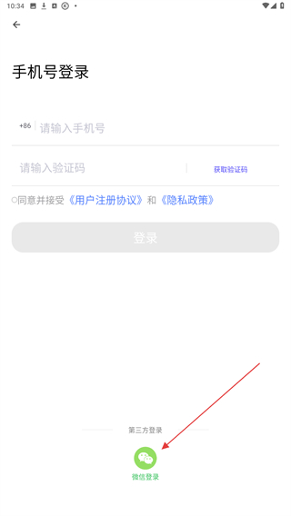 3、進(jìn)入手機(jī)號(hào)登錄的頁(yè)面內(nèi),點(diǎn)擊下方微信登錄即可。