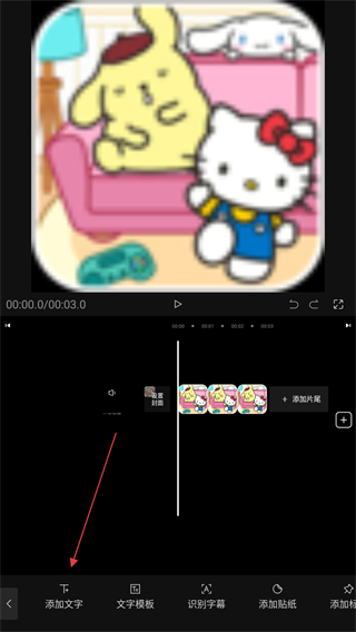 3、進(jìn)入剪輯的頁(yè)面內(nèi),點(diǎn)擊添加文字的功能按鈕。