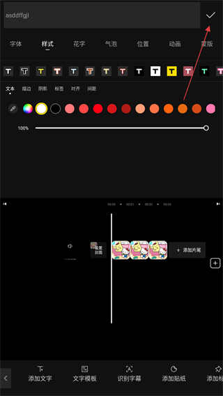 4、輸入內(nèi)容后,點(diǎn)擊右側(cè)打鉤的按鈕即可完成。