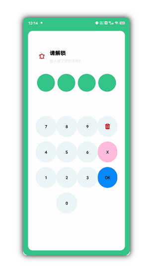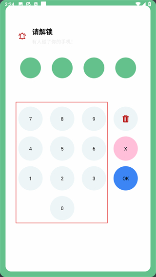 4、當(dāng)報警觸發(fā)時,會進(jìn)入解鎖界面,輸入設(shè)置的解鎖密碼即可關(guān)閉。