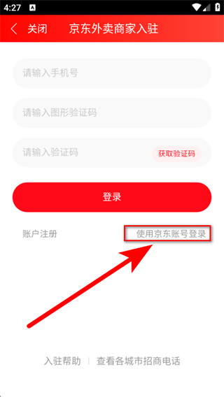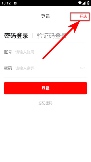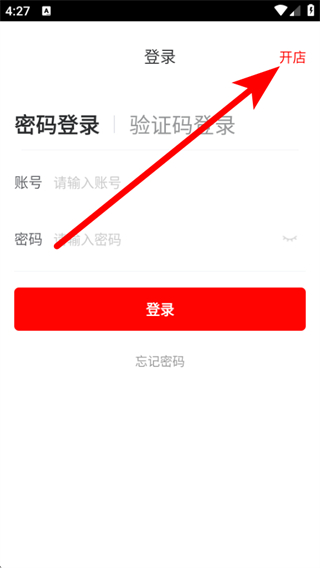 1、打開京東秒送商家版APP,在登錄界面點擊右上角開店。