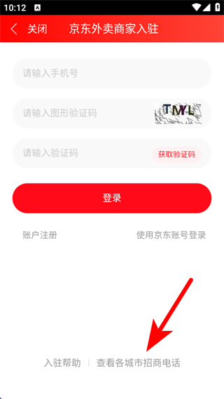 3、進入京東外賣商家入駐頁面后,點擊底部查看各城市招商電話。