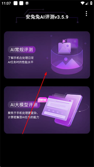 1、打開安兔兔AI評測APP,可選擇AI常規(guī)評測,了解手機處理日常AI任務(wù)的性能水平。