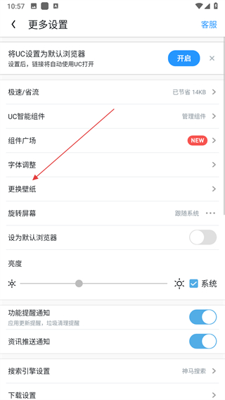 2、在更多設(shè)置頁面,點(diǎn)擊更換壁紙選項(xiàng),進(jìn)入壁紙中心。