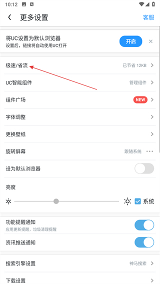 2、在設(shè)置頁面找到極速/省流選項(xiàng),點(diǎn)擊進(jìn)入極速/省流設(shè)置頁面。