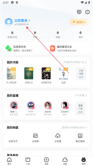 2、進(jìn)入個(gè)人中心頁面之后,找到并點(diǎn)擊立即登錄選項(xiàng)。