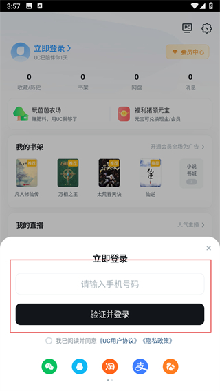 3、在登錄界面中,輸入手機(jī)號(hào)碼后點(diǎn)擊驗(yàn)證并登錄按鈕。