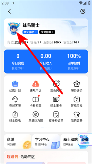1、打開蜂鳥眾包APP,點擊左上角的個人圖標(biāo),進入個人頁面。
