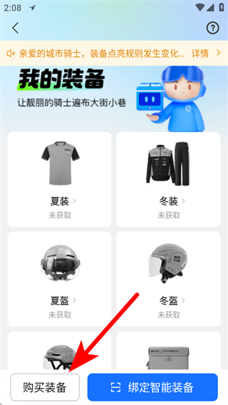 4、在我的裝備頁面,點擊購買裝備按鈕,即可進入裝備購買流程。