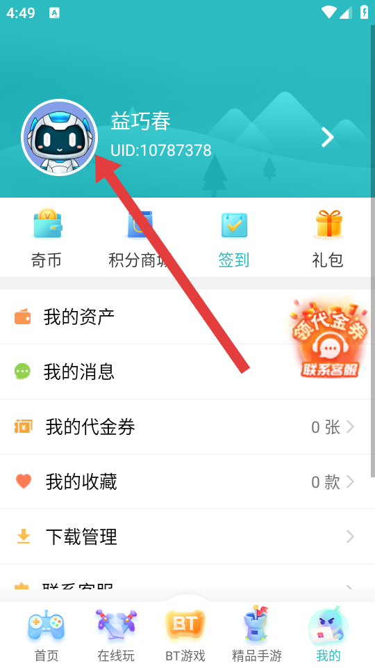 1、在7723游戲盒首頁底部導(dǎo)航欄,點(diǎn)擊最右側(cè)的我的,進(jìn)入個(gè)人中心頁面。